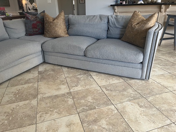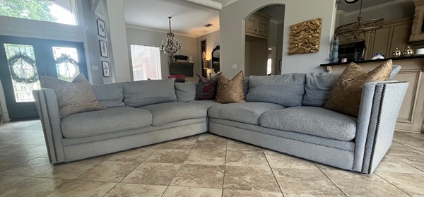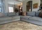 Large 10x10 sectional in a grey performance fabric. Its in great used condition with no rips, tears, stains or odors. It has been in my non-smoking pet friendly home. Recently moved and it doesn't fit in my new living room.