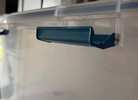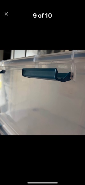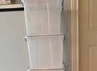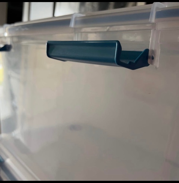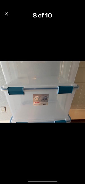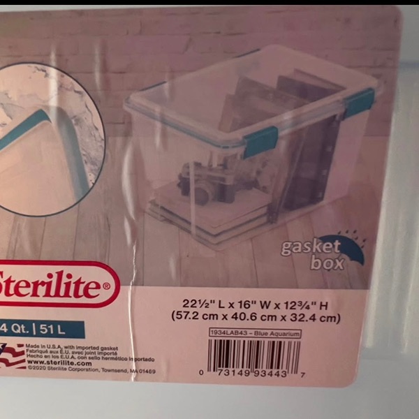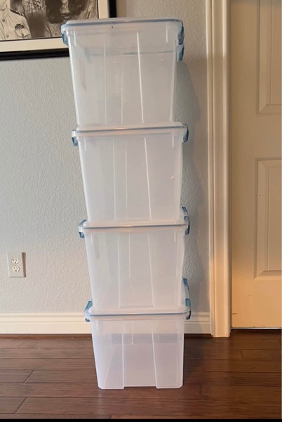4 Clear storage bins with 4 latches, & a gasket tucked into the lid, lending more protection for whatever would be stored. 22 1/2L x 16" W x 12 3/4" H.