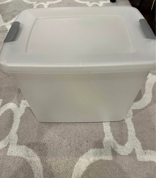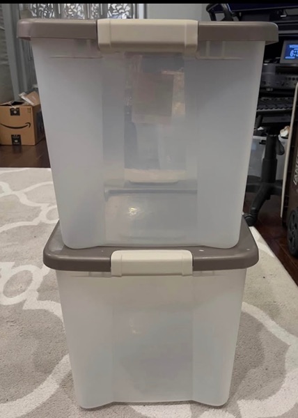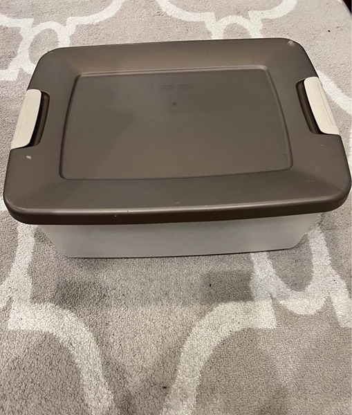 Bronze top (3)- 18 1/2" L x 14 3/4" W x 14 1/4" H, clasp closure (Sterilite)