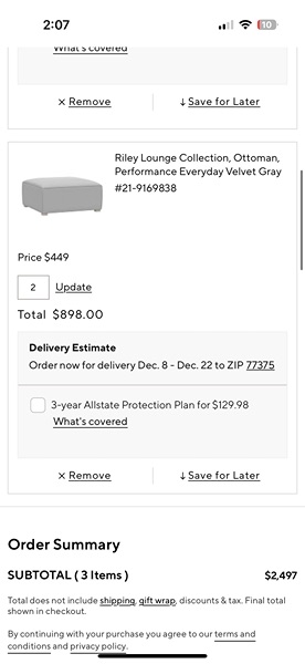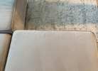 Like new! In the color “Velvet Gray”. No rips or stains. Great use for a kid’s play room or media room. There’s a total of 5 modular pieces. 2 standard size ottomans, 3 seats.