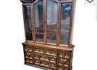 The lighted hutch is 52 inches long, 80 inches tall, 17 inches wide. Three glass shelves on top, with utensil drawers and cabinets on bottom. Glass shelves in perfect condition, no cracks. Plastic seal around side windows has some cracks. The hutch is similar to the one pictured on sale for $532.