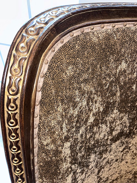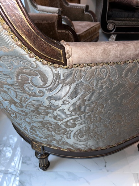 Pair of Louis XV style armchair with a carved wood frame and leopard velvet & reversible leather upholstery accent oversized chairs