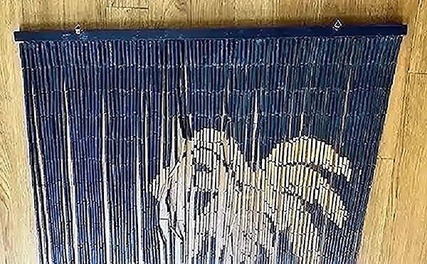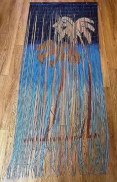 Fits normal size doorways (we used it on a closet so there was a bit of overhang on each side and that looked good too. Only missing a couple strands and has a few kinks from normal wear so discounted appropriately but still looks great!Palm tree - surf - beach - island theme -last pics for price comparisons