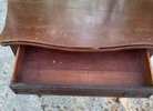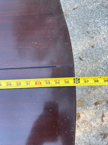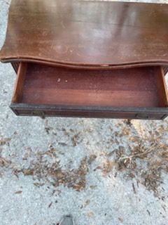 36 by 36 inch game table when flipped open. 18 inches deep when closed. Drawer adds a level of functionality. Table needs some finish work but has stgrong decorative bones. Text 713-578-0511 if interested.