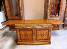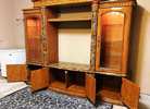 Stunning Elegant Wooden Entertainment Center, Beautifully hand carved with lateral glass curio cabinets. Approximate dimensions Height 87" Wide 105" (Expandable with the extensions included) Deep 24". The side cabinets are joined by a screwed shelf. Free of smoke or pet odor, Overall, it's a piece of furniture in excellent condition. RARE TO FIND.