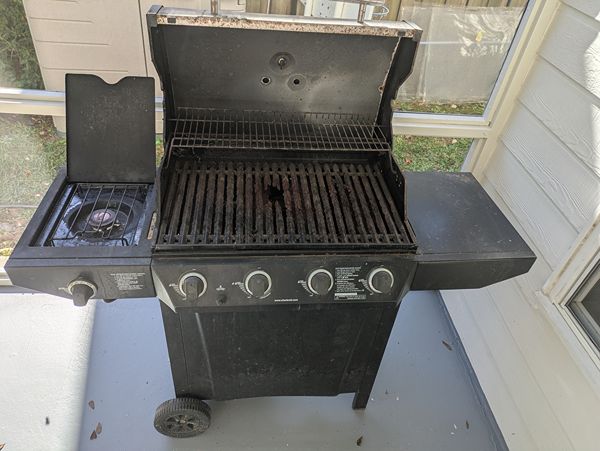 text 8327046482 for Char griller 3 burner. This has normal rust, grate replacement needed. All burners and the side burner fire right up. Only cooked on it a handful of times. Included propane tank and new black cover! Pick up from, Alden bridge, the woodlands TX