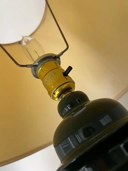 Dark green ceramic table lamp with a white shade. Approx. 21” tall x 13” at widest part of shade…$12 firm