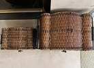 Two wicker baskets with decorative metal accents, perfect for storage or decor.
