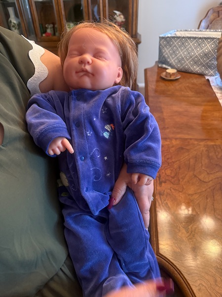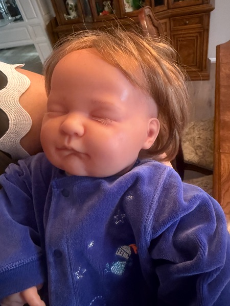 Looks and weight like a 3 month baby boy. Has eyelashes and wrinkles like a real baby. In perfect condition. He needs a new home.