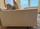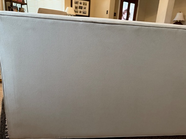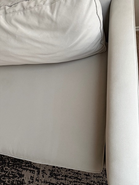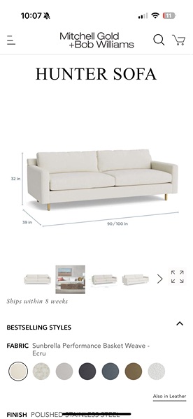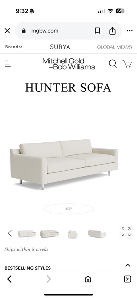 Beautiful Hunter Sofa from Mitchell Gold & Bob Williams. It’s in great condition. No rips or stains. We just shampooed the base & fully washed all covers. This model is 90” wide and 32” Tall, along with polished stainless steel legs. Beautiful neutral color