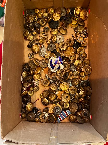 Various military and other type buttons $10.00 for the box.
