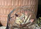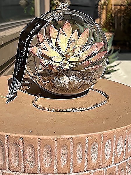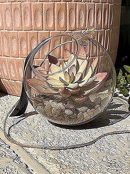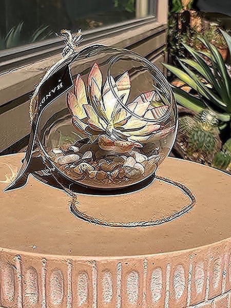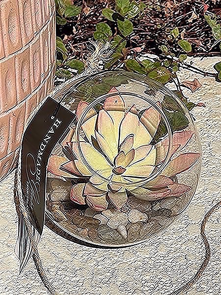 Handmade glass terrarium with a Pottery Barn faux succulent and river stones…$25 firm