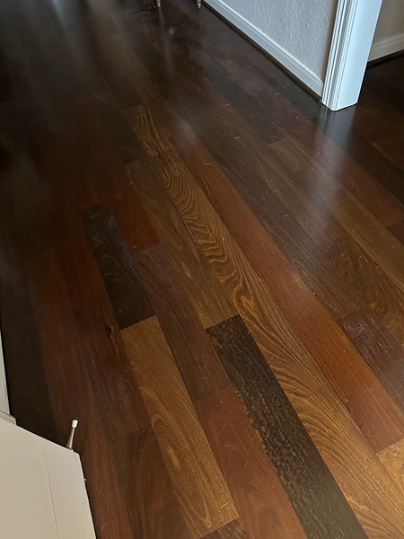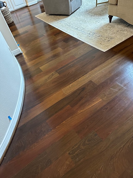 Overordered flooring during Reno. Untreated Brazilian Walnut Flooring, approximately 160 sqft of material (this is an estimate, I do not know exactly). Photos included of actual flooring lot in the house, sanded and treated.