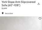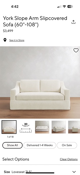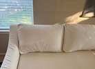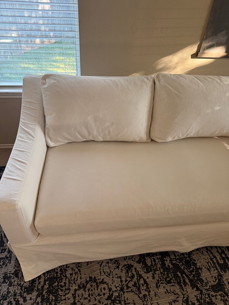 Gorgeous Sofa from PB. This is the “York Slop Arm” in White. 2 years old- like condition. Cushions still have its firmness to it- it is super comfortable! Bench Seating. ONot much used. It’s in great condition. The slipcover is washable. Super easy to slip of and on. No stains. Just small scruffs. Nothing major.