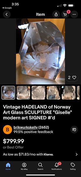 Vintage Hadeland of Norway Art Glass Sculpture Giselle Modern Art Photos