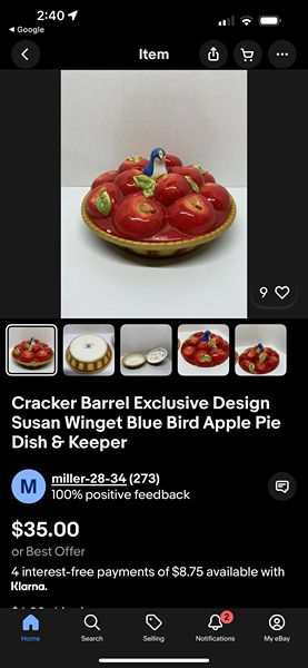 Cracker Barrel Susan Winget Blue Bird Apple Pie Dish & Keeper Photos