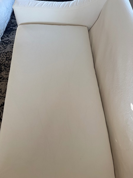 Gorgeous Sofa from PB. This is the “York Slop Arm” in White. 2 years old. Cushions still have its firmness to it- it is super comfortable! Bench Seating. Not much used. It’s in great condition. The slipcover is washable. Super easy to slip of and on. I did wash it and air dried it (a little wrinkly) but it’s clean!