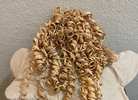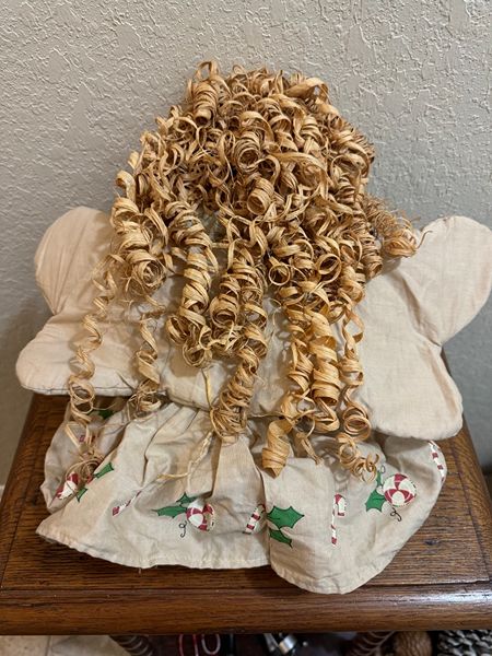 Cute dolls with raffia hair ** dresses have Christmas designs on them ** Large one is approx. 24" ** Small one is approx. 15"