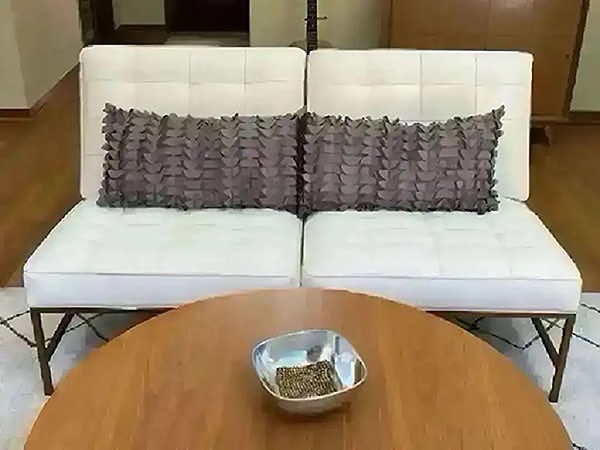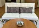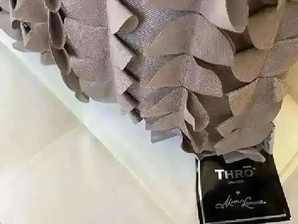 Thro by Marlo Lorenz, 14” x 27” Grand Street Faux Linen pillows, poly fill, Color: stone, Stored in plastic