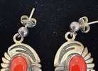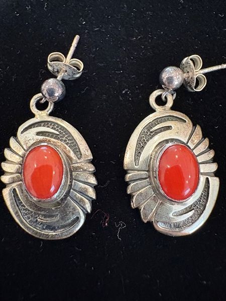 This is a genuine Coral Beaded necklace. Purchased this in 8/3/03. Never worn. Mounted in Sterling Silver. The clasp is Sterling Silver. Matching earrings are pierced.
