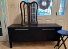 Wooden Desk/End tables/Console table/Toy chest/office chair/antique mirror/Antique sleds (see photos)