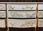 - Lovely solid wood, 9 drawer French country Drexel Touraine dresser has been transformed and is ready for your home.