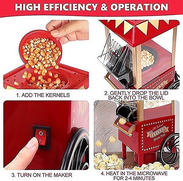 Enjoy everyone’s favorite movie theater treat in the comfort of your own home with the Popcorn Air Popper! This convenient countertop pop corner machine uses a swirling flow of hot air to pop kernels instead of oil, resulting in a healthier snack and fewer un-popped kernels. The mini popcorn machine prepares up to 6 cups of popcorn at a time, and it features a timeless vintage design that makes it a fun gift for birthdays, holidays, weddings, or housewarmings.
