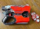 Are you ready to bring some multi-shot madness to your next mission? The Diatron blaster lets you send two discs hurtling toward your target at the same time with every shot. Firing this fast is no problem, because the blaster's built-in drop-down magazine snaps open for fast, easy reloading. The Nerf blaster's Tactical Rail is compatible with any Tactical Rail accessory (sold separately), so you can upgrade at will for even more strategic advantage. The XLR Disc Tech Nerf Gun Blaster hurls the bright orange Vortex discs an ultra-long distance, with twice the firepower and twice the disc blasting action. Assembled Product Dimensions (L× W x H)