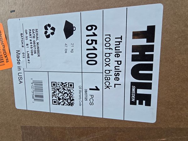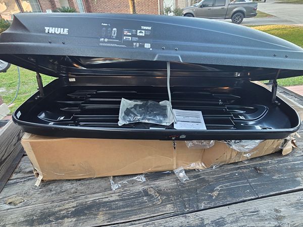 Brand new in box Thule 615 Pulse Rack Large Hard Shell Cargo Box. All accessories included. Measures 76 x 33 x 16.5 inches, 16 cubic feet capacity, with keys. Model 615100 If interested please text me Price is firm. Pick up only