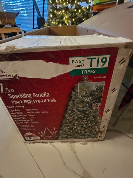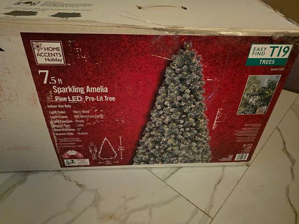 Brand new never used Sparkling Amelia 7.5 Ft Christmas Tree, pre lit, with frost and pine cones. Brand: Home Accents Holiday Model T19. If interested please text me . Pick up only.
