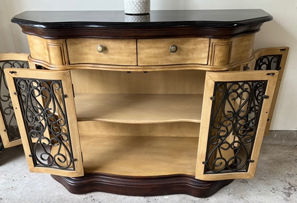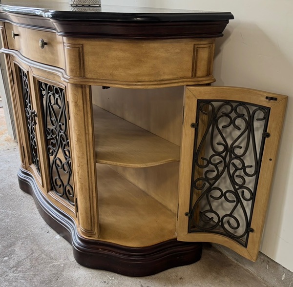Decorative cabinet. Granite top. Good condition overall (a few minor nicks, one drawer doesn't open). Solid, heavy.