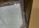 Window is acrylic with a white film on it that peels off. Shelves removable to configure how you want. Paid $75