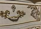- We cleaned, filled, sanded, primed, added texture then lovely beige glazes in layers, Hand poured moulds of magnolias then attached, finally we gilded and sealed for durability.