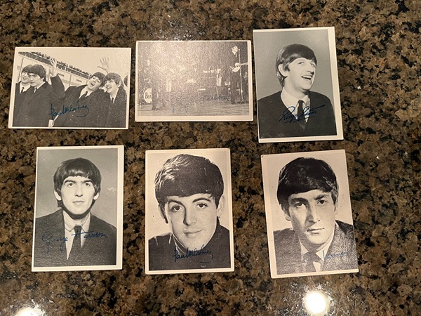 A wider ray approximately 76 Beatles cards from 1964. These were the rage back in the day cards are an excellent condition
