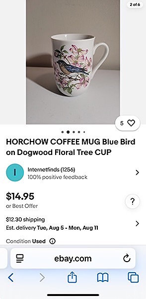 Each holds approx. 8 oz. Excellent used condition. The complete set of six from luxury brand Horchow, was originally priced over $500…$15 each, firm