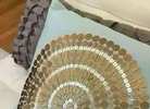 Light blue fabric with beautiful sequin detail. Poly fill, 18” x 18”, Stored in plastic. New with tag! (Orig. $48)…$35 firm