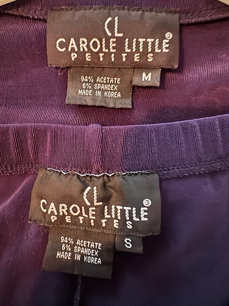 Stylish black sweater with zipper detail and matching skirt ** Size PM *** Purple top and pants * * stretchy fabric ** top is size M and pants are size S *** Both outfits are in like new condition