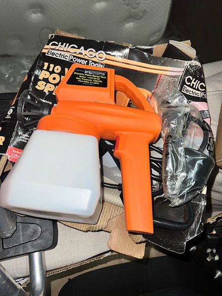 Brand new, open-box Wagner Paint Crew 660 advanced airless paint sprayer (2600 PSI). Never used, never run paint. Includes Wagner GX-06 airless spray gun (open box) and Chicago Electric 110V power sprayer.