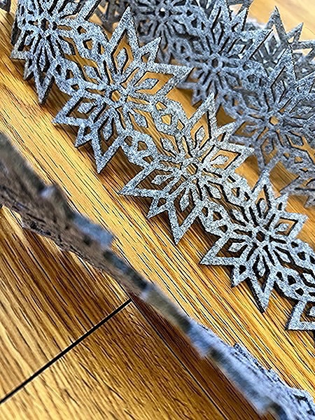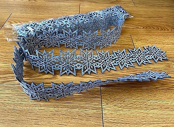 New! Gray felt with snowflake design. Great for any crafting or gift wrapping. Two strands. Each strand is 60” long!