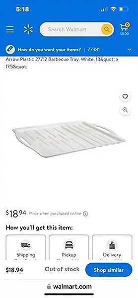 size : 13 x 17.5 Heavy duty barbecue tray with ridges to hold food in place. Dishwasher safe…$10 firm