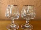 Mid century modern vibe! All are new, Etoile (starburst) etched glass with real platinum trim. Made in Slovakia. Two highball glasses (5.75”x 2 1/2”) and two brandy glasses (5” x 3 1/2”)…$40 total - willing to separate