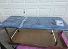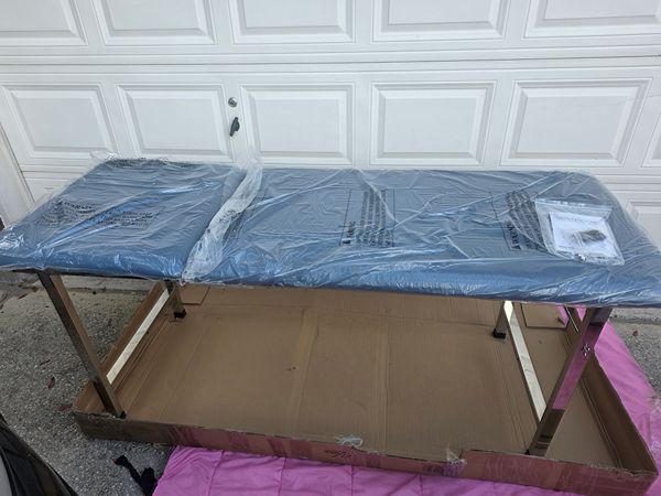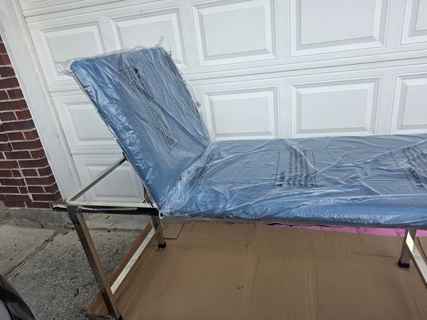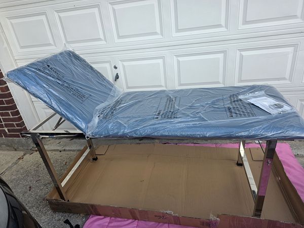 Brand new never used AdirMed Viva Comfort Folding Medical Exam Table, Basic Adjustable Patient Treatment Table, Doctor Bed, Blue color. It measures 74.8''L x 27.5''W x 31.4''H. 2' padded foam upholstery, Adjustable backrest, steel frame, 440 lbs. max capacity, Collapsible Legs. Model Retails for $750 + tax on Amazon. If interested please text me at 832-64zero-3422. Pick up only.