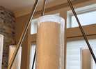 cylindrical, crackled glass shades with white inner glass to create soft light