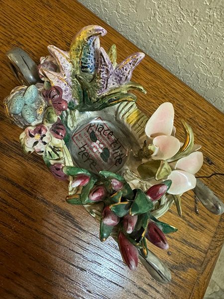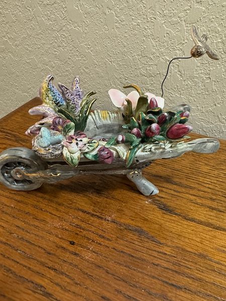 2002 Cart with Flowers Tealight candle holder ** 7.5" x 3" x 3.5"H (height does not include the bird) ** $20.00