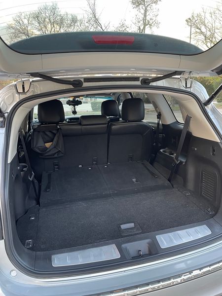 It has seating for up to 7 passengers with flexible second- and third-row seating for cargo or passengers. Premium interior materials with soft-touch surfaces, leather-trimmed seats, and available panoramic sunroof.