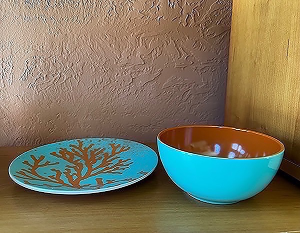 Melamine by Precidio. Salad size plate (8”) and bowl (approx. 6”)…$15 total, firm