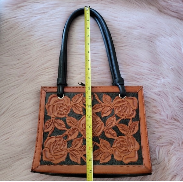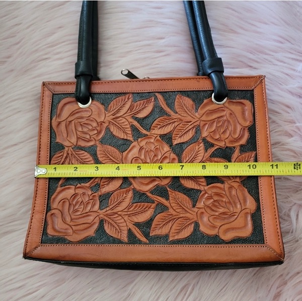 Handcrafted leather rose satchel shoulder purse. Excellent condition/Never used