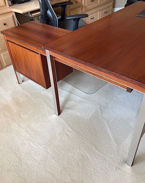 Mid-Century Danish Teak desk in extremely good condition. It's 63" wide and 68" deep (side of extension). $750 or best offer.