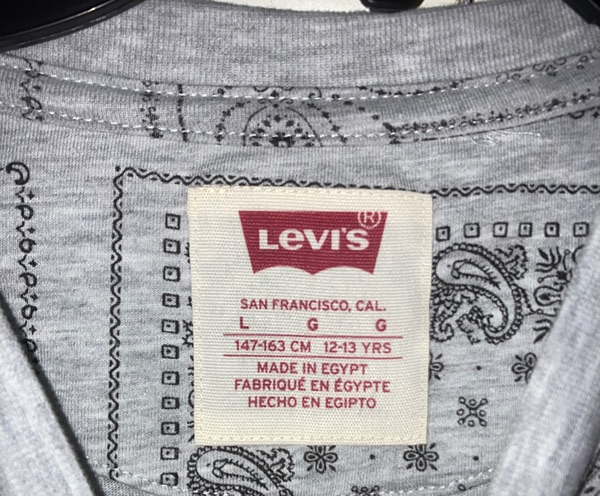 Levi's boys gray bandana print short sleeve shirt with red logo, youth large, 12-13 years. New with tags from smoke free home. $15