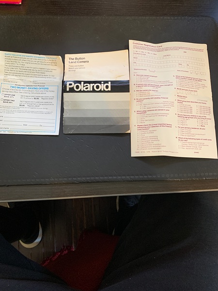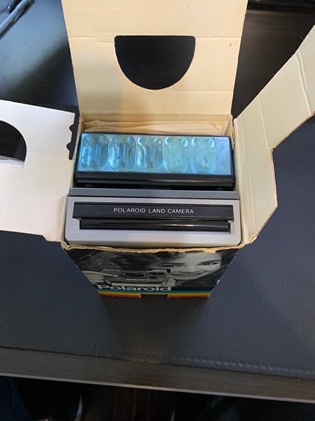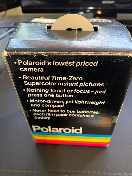 For sale is a retro Polaroid The Button Land Camera, circa 1980. Includes original box, owner's manual, flash bar with three bulbs remaining, and owner's registration card. The camera is in excellent condition and the box is in fair condition, given it's age. The camera uses SX-70 film, or the camera can be modified to accept 600 film. Fun time-zero point and click pictures. Thank you.